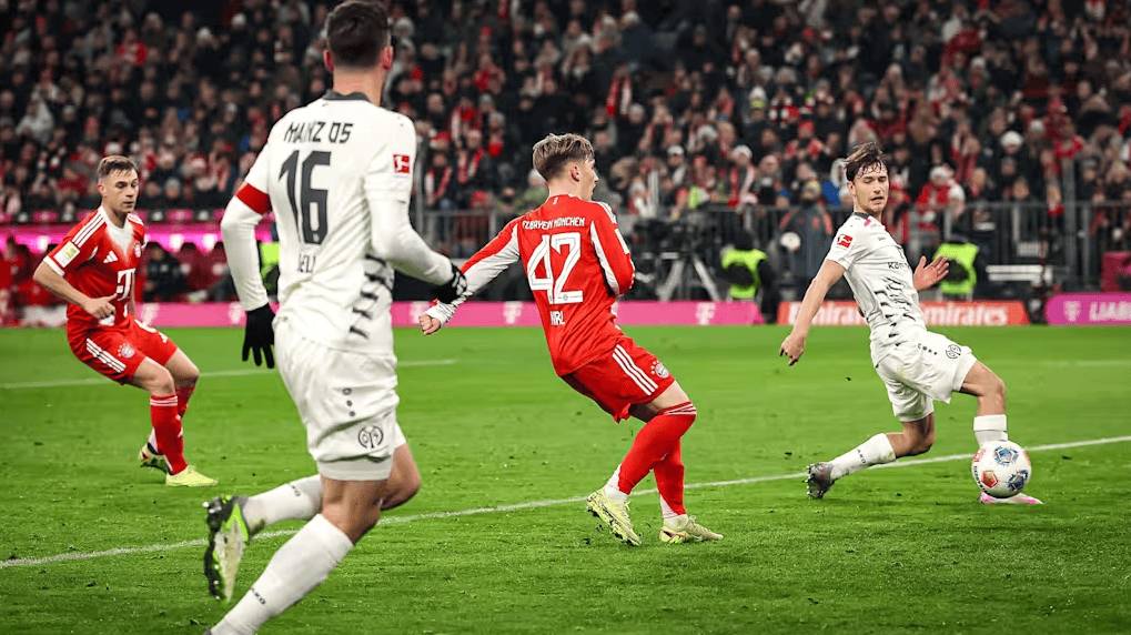 比赛开局,拜仁攻势如潮。奥利塞多次制造威胁,17岁小将卡尔第29分钟推射空门得手,为拜仁首开纪录。但美因茨顽强反击,上半场补时阶段由科兹洛乌斯基头球扳平比分。下半场,美因茨反击再奏效,李在城头球破门反超比分。关键时刻,凯恩造点并亲自主罚命中,帮助拜仁艰难追平。整场比赛,拜仁控球率高达68%,射门次数多达24次,却仅收获一场平局。